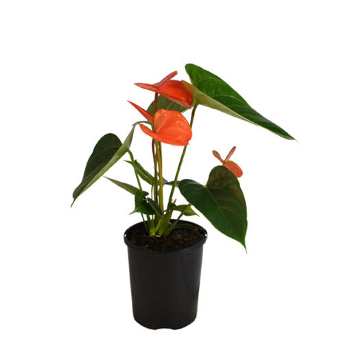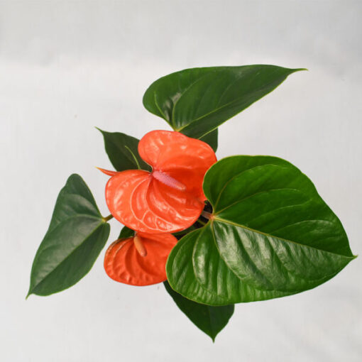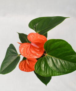 Keep this bright orange anthurium somewhere with little light and lots of humidity. With some extra love and attention, be prepared to watch it bloom those full and large tangerine spathes all year long which also make for aesthetic cut flowers.