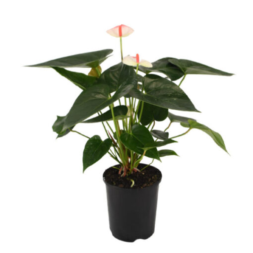 A work of art the Anthurium Elegance, has rich verdant foliage that blooms white spathes painted tones of raspberry and green with a bright pink spadix at the centre. Anthuriums are known for their air-purifying qualities and are a symbol of good-luck. The blooms like water-painted canvas’ will add a beautiful elegance to your home. Keep in mind this plant loves warm and humid environments and some extra TLC.