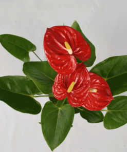 With proper care when this plant reaches maturity, it will produce many glossy heart-shaped flowers a year and remain an aesthetic feature to your living space (note that Anthuriums thrive most in sheltered humid positions like the bathroom).