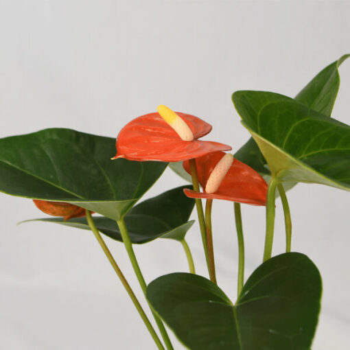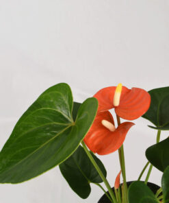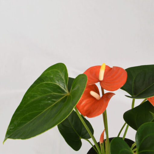 Choosing the right anthurium can make you feel like a kid in a candy shop surrounded by a mirage of all different colours and textures. If you’re someone who often reaches for Jaffa’s the Orangina Anthurium may be your perfect treat. With delicately shaped flowers reminiscent of carnelian, this plants flowers have blood orange spathes that contrast with a honey spadix at each bloom’s centre. Their glossy orange colour can spark enthusiasm and creativity while this anthurium can also purify the air of your indoor spaces.
