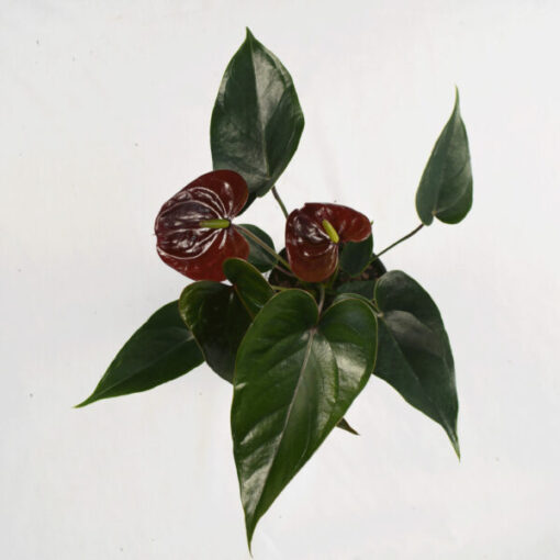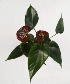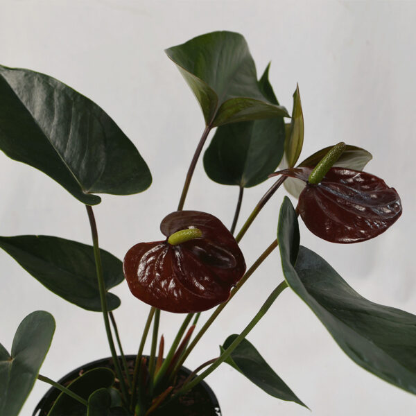 The Anthurium Paris Black is an elegant and rare plant that will add exquisite character to your home. It flowers all throughout the year and thrives in comfortable to humid temperatures. Its long verdant leaves, accompany the intense dark chocolate flower that grows in a striking heart shape with a similar coloured spathe. Anthuriums while adding a regal nature to your home also provide it with improved air quality and good luck.