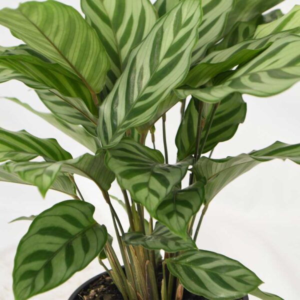 Colour and texture that instantly makes your day bright, the Calathea Freddy, is a smaller but handsome indoor or outdoor (given the right undercover position) plant. A pattern of pastel versus bright green, like looking into a calm and collected kaleidoscope. This Calathea is bursting with full and attractive foliage ready to purify the air in your home and add the most attractive splash of green with those slightly ruffle-edged and fascinating leaves.