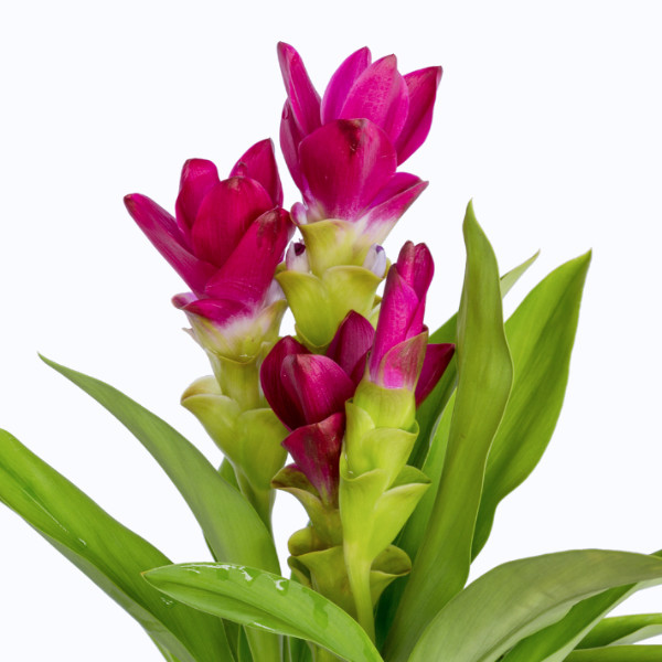 Romantic hues are painted all over this flowering ginger with its vibrant purple-rose shades and miniature day flowers that grow in-between those enchanting bracts like a magical oasis for fairies. The day flowers are white with purple accents and shoot through when your Thai Beauty Red is happy and thriving. These large alluring flowers unfurl from the long bright-green foliage and turn any space into an enchanting tropical oasis. As cut flowers they last many weeks and lift the mood of where they are placed.