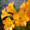 A tall shrubbing plant that produces large round bursts of gold trumpet shaped flowers.